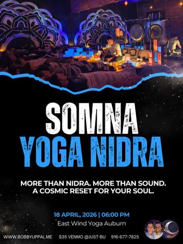 SOMNA is an immersive Yoga Nidra experience designed to guide you into profound rest and nervous system restoration. Through guided Nidra, sound bath, Reiki healing, and meditation, the body is invited to soften while the mind gently releases its grip. This is not passive rest—it’s a deeply intentional reset that helps you leave feeling lighter, clearer, and more grounded. Perfect for anyone seeking stress relief, emotional balance, and a return to inner calm.