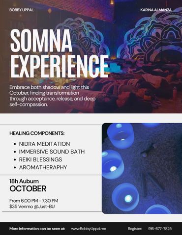 Each month, we invite you to join our unique Somna Experience, with guided meditation, sound, and Reiki, designed to lead you on a journey of expanded consciousness.